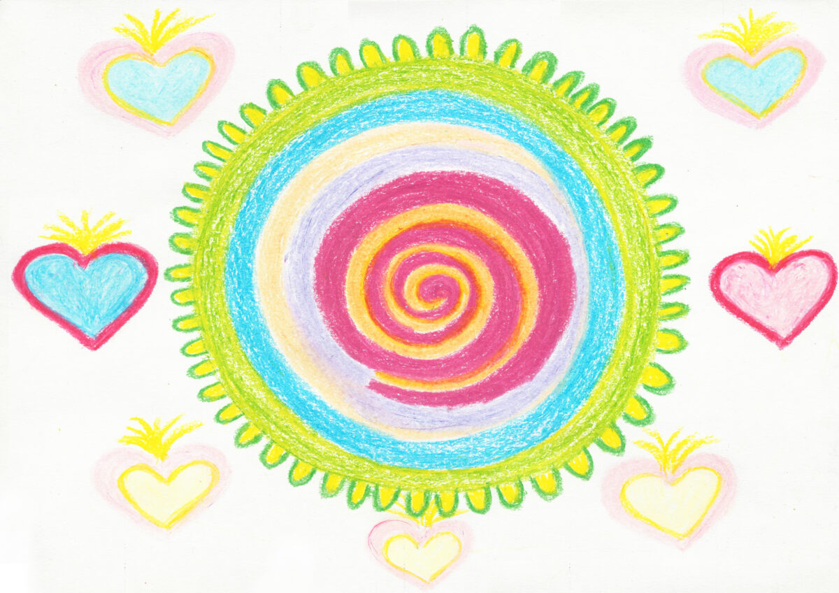 - Zelený kruh představuje Karmický kruh a symbol žluté spirály uvnitř spirály, představuje ochranu vztahu a ochranu Stvořitele. Zelená barva léčí každou nemoc i vztah.